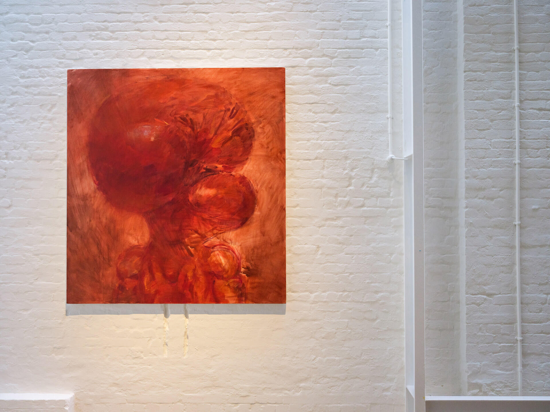 Shang-Liang’s powerful contemporary work “Boxing Man No. 4” on display at White Rabbit Gallery’s Tender Comrade exhibition. The artwork features bold red and orange abstract forms, exploring themes of physicality and movement through dynamic brushwork.
